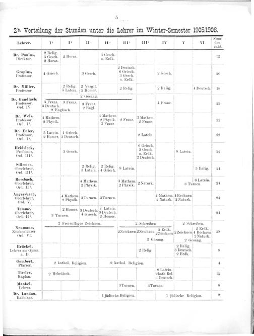 re 2 2 Wuglisch. 12 1 2 Engl. — 1 Dr. Weis. 4 Mathem.. 4 Mathem.. 3 Mathem. Professor, 2 phvsik 2 Physik. 2 Franz. ram, 22 Ord. I.* Pbysik. 3 Franz.* Frauz. ————— Dr. Euler, in. 4 Gri 5 Latein. 4 Griech... Professor, 2 Homer. 3 Deutsch.) S Latein. 22 Ord. 1. —— 7— 3 48 6 Griech. Heidsieck Professor, 1 3 Gesch. 3 Gesoh 8 Latein. 22 . 2„' Ord. III². V 2 Deutsch. — Stürmer, 2 Reli 2 g. 2 Relig. 3 pie ⸗ MWerloiiger, 5 latein. 4 Griech. 8 Latein. V V 3 Relig. 24 ——— l— Rossbach, S Latein. 4 Mathem. 3 Mathem.— m atein. Cbeyicurer, 2 Physik. 2 Physib.(² Jaturk. V 3 Turnen. 24 — 2— 1 3— Angersbach, 5 4 Mathem. 3 f 3p 4 Mathem. 4Rec hnen 0, OwandeVer 2 Phyaik. 3 Turnen. 3Thrnen. 2 Naturk. 2 Naturk. 24 —— V——————— Temme, 2 Homer. 3 De 7 Latein. Oberlehrer,— 3 Deutsch. 24 T
