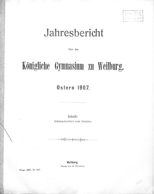 Königliche Gymnasium Iu Weilhurg.