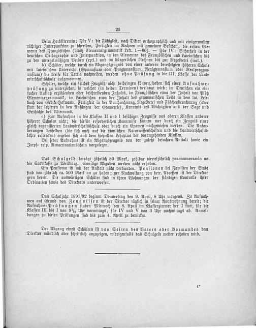 Ein Penſionat iſt mit der Anſtalt nicht verbunden. Penſionen bei Familien der Stadt ſind von jährlich ca. 500 Mark an zu haben; zur Nachweiſung von betr. Adreſſen iſt der Direktor gern bereit. Die auswärtigen Schüler ſind in ihren Wohnungen der ſtändigen Kontrolle ihrer Ordinarien ſowie des Direktors unterworfen.