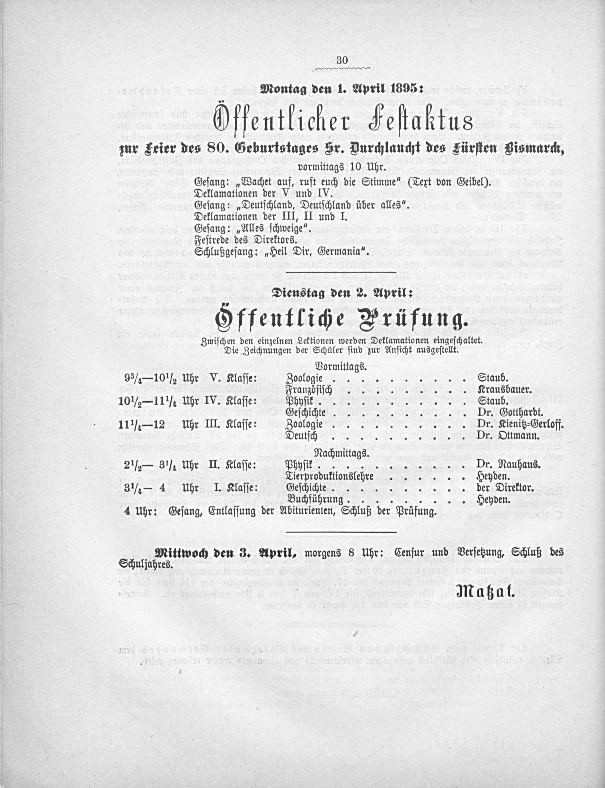 4 Uhr: Geſang, Entlaſſung der Abiturienten, Schluß der Prüfung.