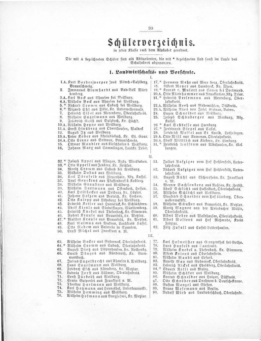 Die mit A bezeichneten Schüler ſind als Abiturienten, die mit* bezeichneten ſind ſonſt im Laufe des Schuljahres abgegangen.