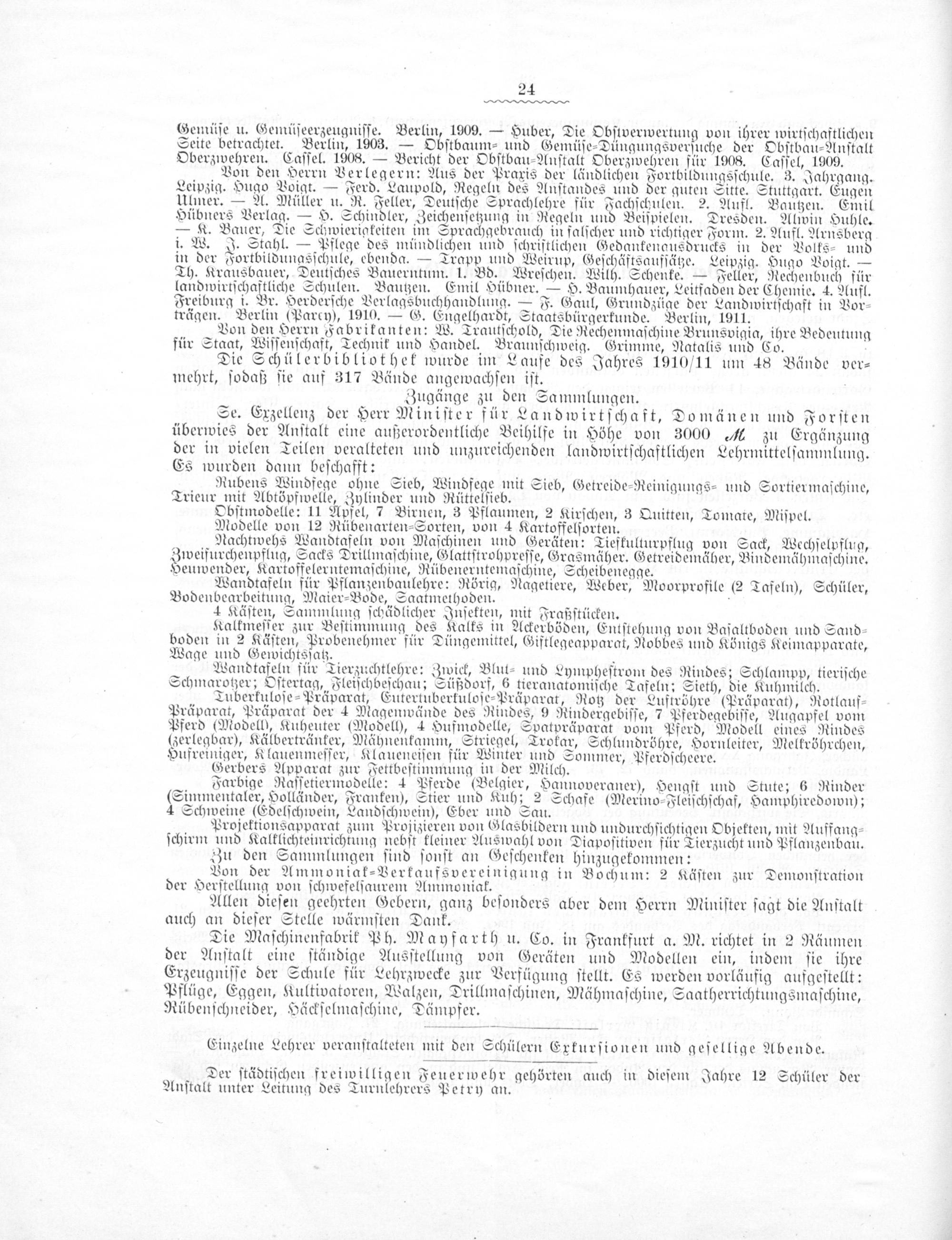Gemüſe u. Gemüſeerzeugniſſe. Berlin, 1909.— Huber, Die Obſtverwertung von ihrer wirtſchaftlichen Seite betrachtet. Berlin, 1903.— Obſtbaum- und Gemüſe⸗Düngungsverſuche der Obſtbau⸗Anſtalt Oberzwehren. Caſſel. 1908.— Bericht der Obſtbau-Anſtalt Oberzwehren für 1908. Caſſel, 1909.