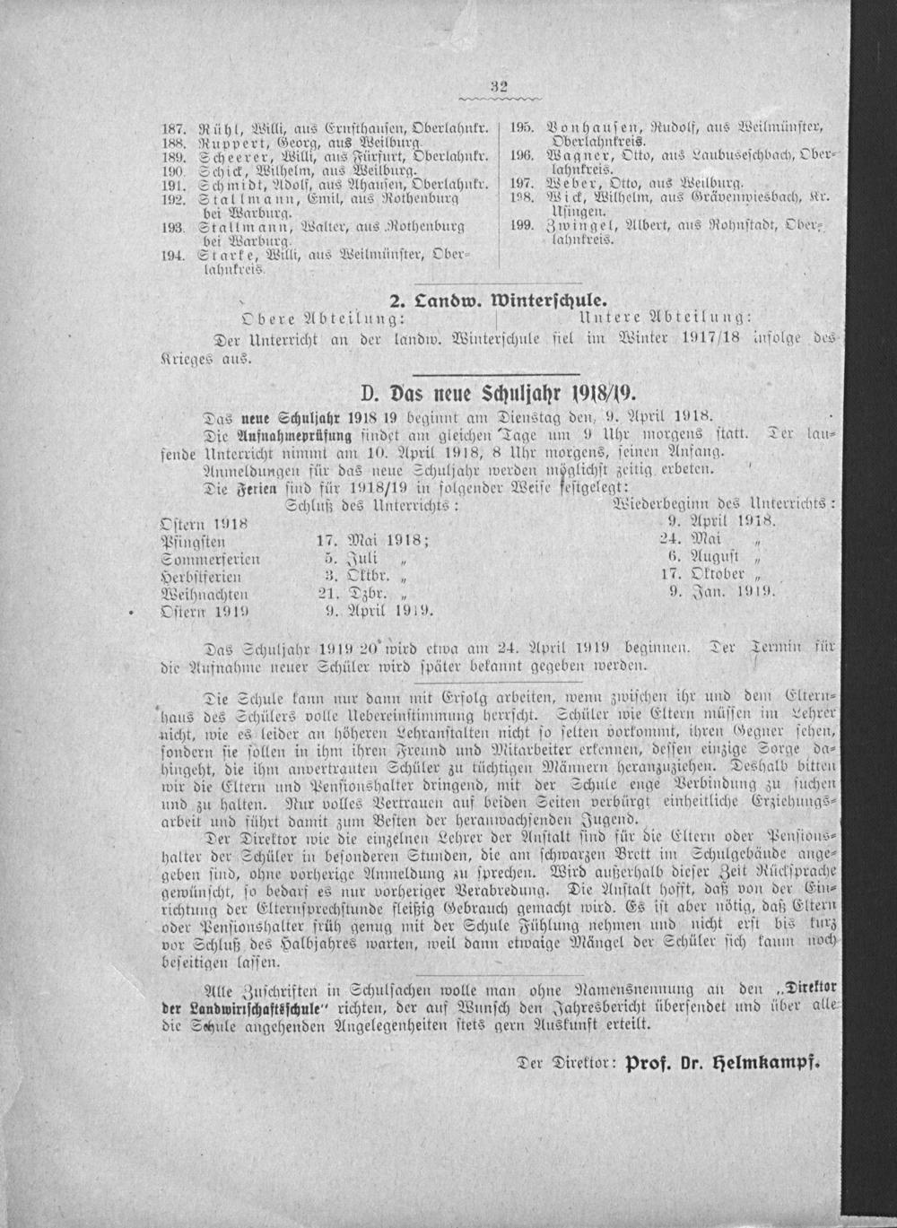 Das Schuljahr 1919 20 wird etwa am 24. April 1919 beginnen. Der Termin für