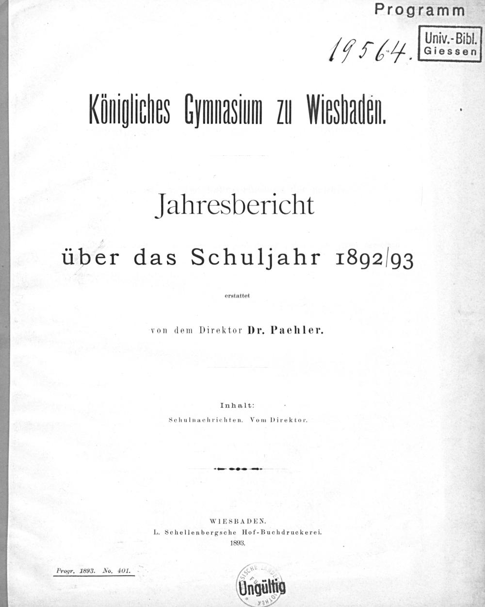 on dem Direktor Dr. Paehler.