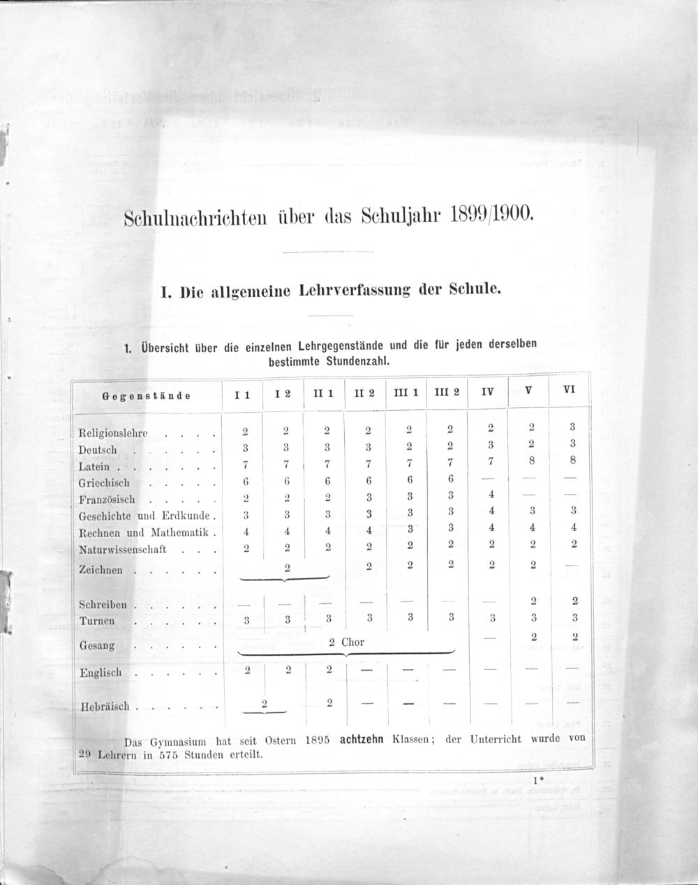 Das Gymnasium hat seit Ostern 1895 achtzehn Klassen; der Unterricht wurde von