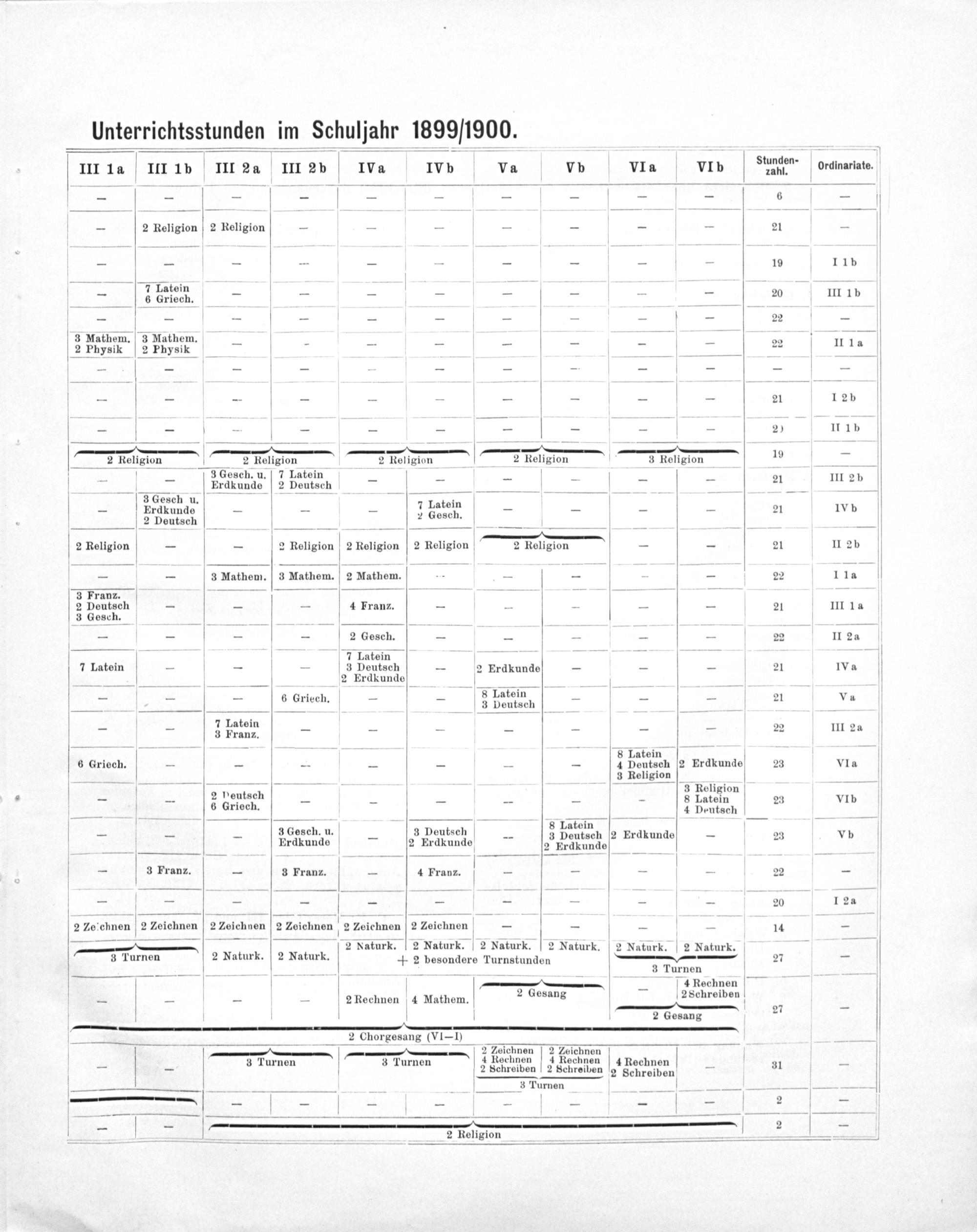 Unterrichtsstunden im Schuljahr 1899/1900.