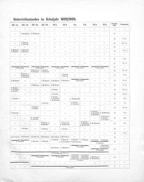 f Stunden- J0. 1II 14 IHI 11 V III 24 III 2 b Iva IVW Va V VI Vi en. ranarite —————————— 6— — 2 Religion 2 Religion——— I———— 21— ——— 1—— 1 —————————— 19 I 1 b 77 katein d—— 6 Griech.———————— 20 III 1 b —————-————— 22— 3 Mathem. 3 Mathem.— T 2 Physik 2 Physik— 1—————— 22 II 1a ———,——— ——————————— —————— V———— 21 1 2 b .—————— ——-———————-—— 2) 11 1 5b —-————,— 2 Religion 2 Religion 2 Religion 2 Religion 3 Religion 4— ͤ desch. u. 7 Latein 1— 2 b Erdkunde“ 2 Deutsch——-[—— 2 ul 2 b. 3 desch u... Rn„—— 1— V— Erdkunde——— 7 Pataiad—-—— 21 IVb 2 Deutsch— ——— Tn 1————*—— 2 Religion—— 2 Religion 2 Religion 2 Religion 2 Religion I—— 21 II 2 b ·¶·Q/—“-————[.[ꝭC—— T— 3 Mathem. 3 Mathem. 2 Mathem.————— 22 11 a2 3 Franz. 5 3 w————— 2 Deutsch——— 4 Franz.————— 21 III 12 3 Gesch.———— 2 ———— 2 Gesch.————— 22 II 2a ————————— 1 7 Latein 7 Latein——— 3 Peutsch— 2 Erdkunde——— 21 IVa ——— 2 Prdkunde— ——— e— STLatein—— 3 6 Griech. V 3 Peutsch. 8 21 Ve 7 Latein 22 2 —* 3 Franz.——————— 22 III 2a .— 1 ratem 6 Griech.——————— 4 Deutsch 2 Erdkunde 23 VIa — 3 Religion ,—————3 Religion— —— 2 Deutsch— 1———— 8 Latein 23 VIb 6 Griech. 4 Deutsch ——— 1—— ,——— 8 Latein ——— 3 Gesch. u.— 3 Deutsch— 3 Deutsch 2 Erdkunde— 2 Vb Frihunde 2 Erdkunde 2 Erdkunde 1. . 3 Franz.— 3 Franz.— 4 Franz. Y———— 22— ——————E 2 2e. chnen 2zeichnen 2 Zeichnen 2 Zeichnen 2 Zeichnen 2zeiehnen 2 Zeichnen 3———— 14— —— 8 2 Naturk. 2 Naturk. 2 Naturk.2 Naturk. 2 Nuturk. 2 Naturk. 4 3 Turnen 2 Naturk. 2 Naturk.+ 2 besondere Turnstundon 27— ——— 2——— 3 Turnen. 4 Rechnen— ———— 2 Rechnen. Mathem. 2 Gesang 2Sehreiben 2— 2 Gesang 27 — 2 Chorgesang(VI- 1)— 1—— Leich 2 Zoich ſ r 3 † 4 Rechnen 4 Rech z — V— I 3 Turnen V 3 Turnon V 2 Schrelben 2 Sekrelleen 2 Sehrtaidon 31— ——;———————,³ 3 Purnen—————— b—— 3—— ͤ 1