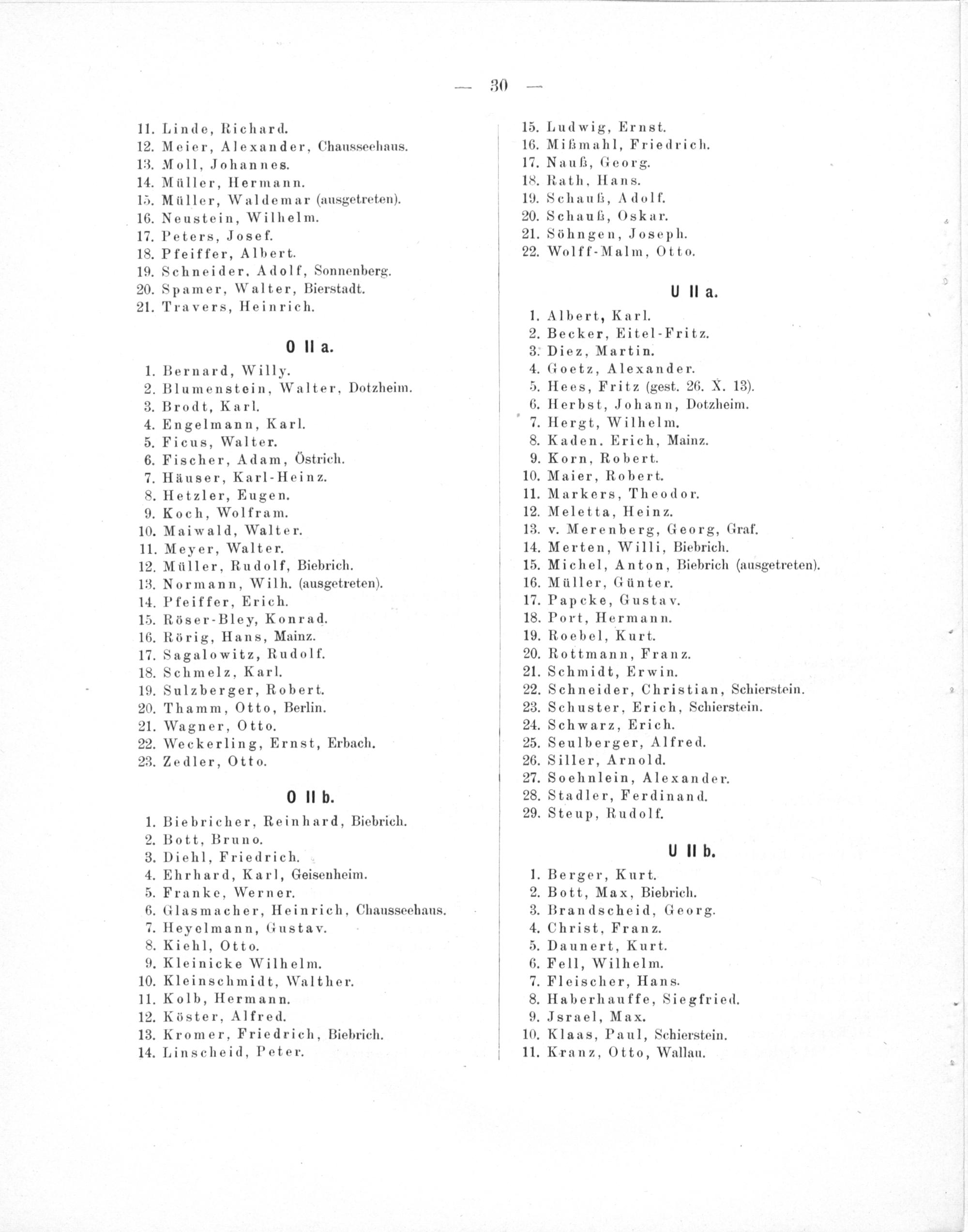 . Kleinicke Wilhelm. . Kleinschmidt, Walther. .Kolb, Hermann. . Köster, Alfred. . Kromer, Friedrich, Biebrich. .Linscheid, Peter.