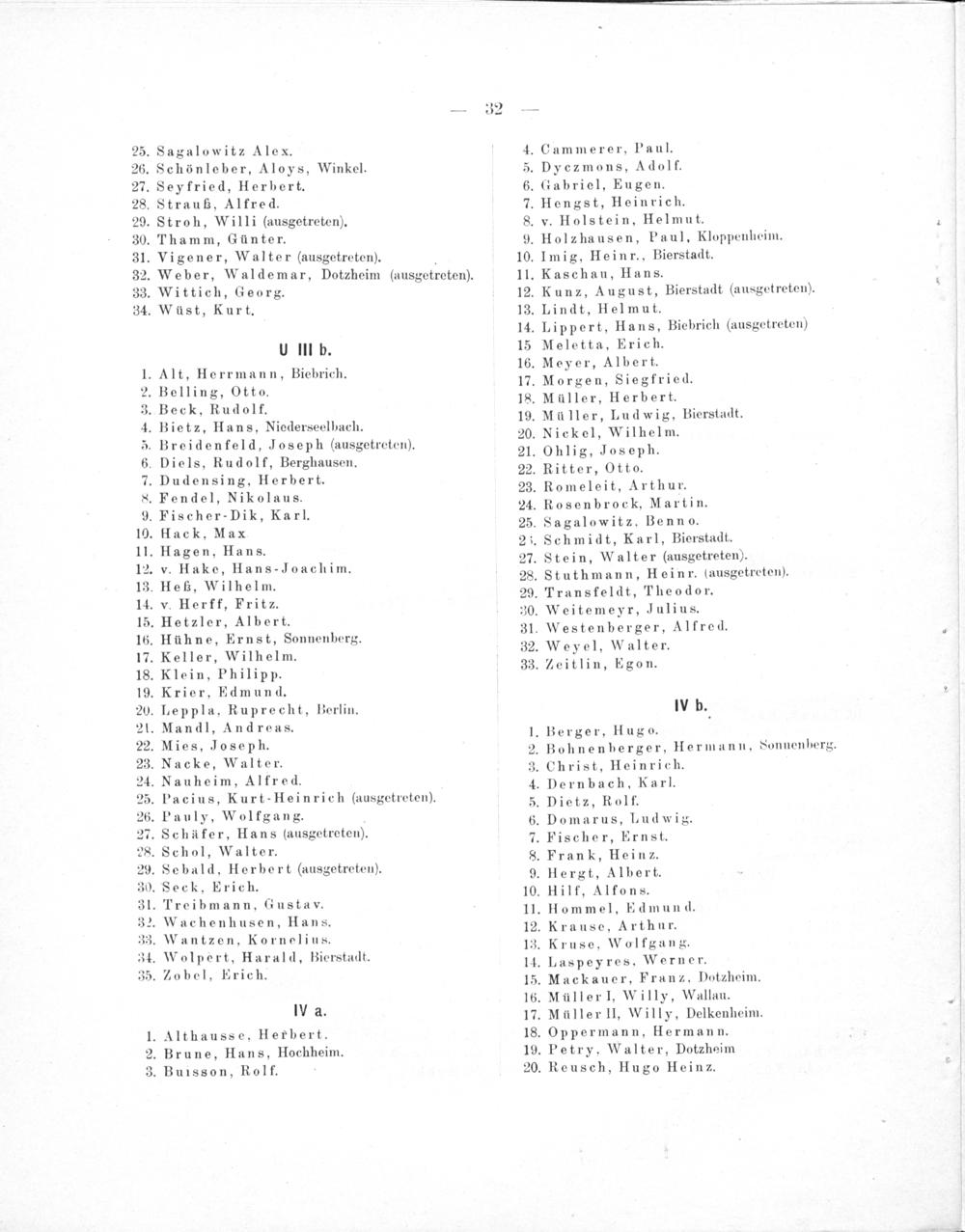 . Stroh, Willi(ausgetreten). 30. Vigener, Walter(ausgetreten).. 2. Weber, Waldemar, Dotzheim(ausgetreten). 3. Wittich, Georg. Wüst, Kurt.