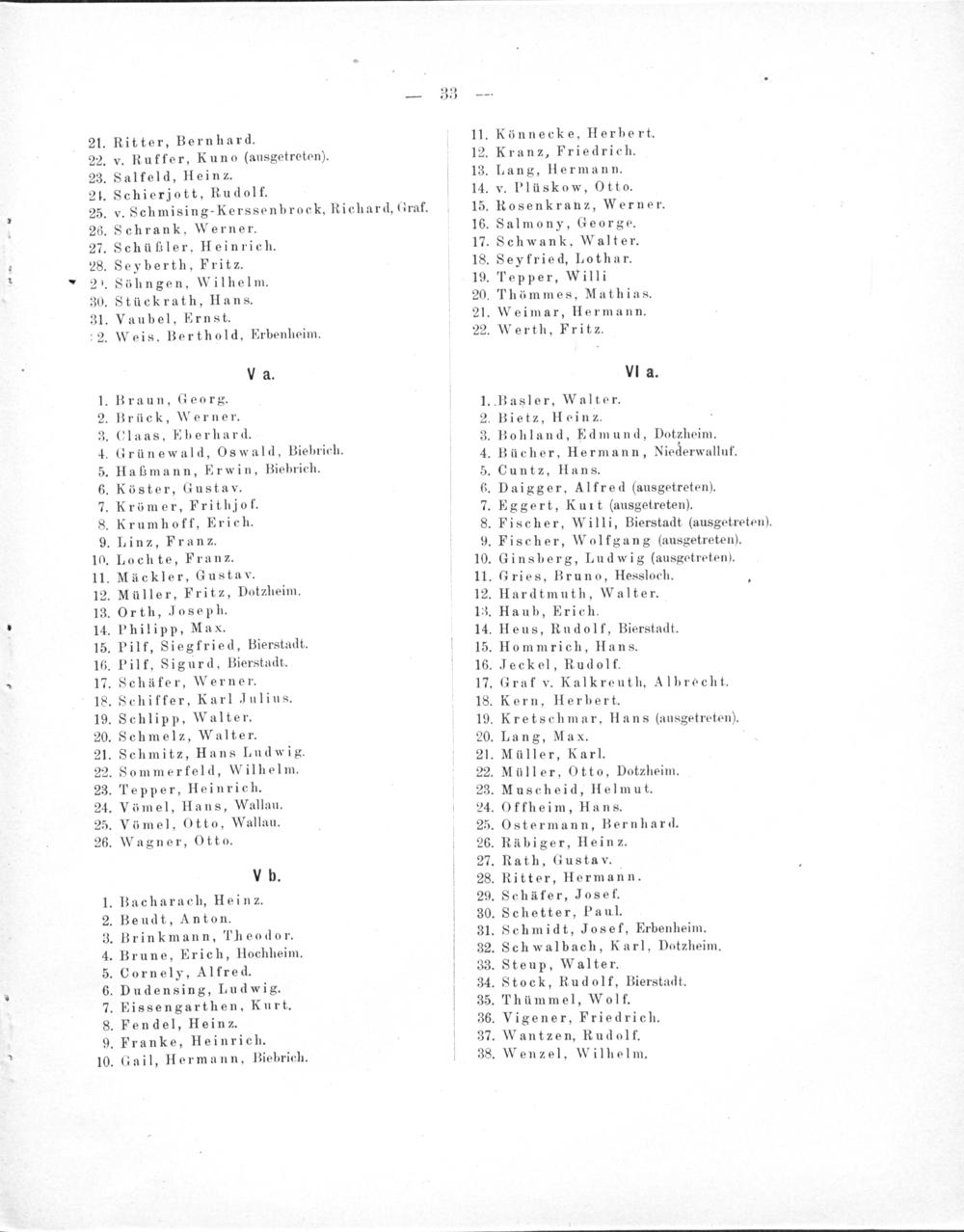 Pilf, Siegfried, Bierstadt. Pilf, Sigurd. Bierstadt. .Schäfer, Werner. Schiffer, Karl Julius. .Schlipp. Walter. .Schmelz, Walter. .Schmitz, Hans Ludwig. Sommerfeld, Wilhelm. 3. Tepper, Heinrich. .Vömel, Hans, Wallau. Vömel, Otto, Wallau.