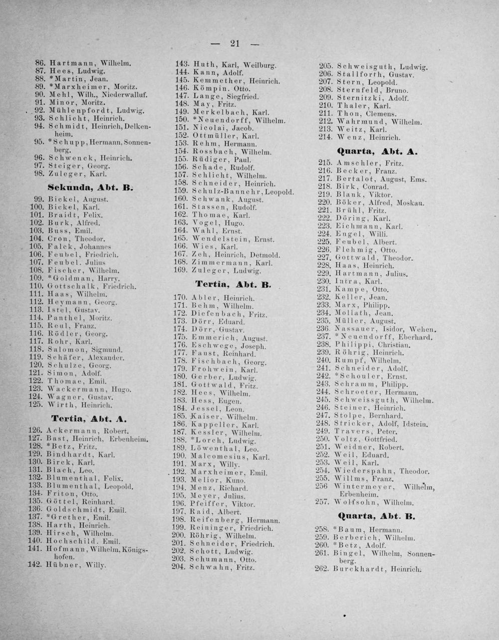 Cron, Theodor. Falck, Johannes Feubel, Friedrich. Feubel. Julius Fischer, Wilhelm. x Goldman, Harry. Gottschalk, Friedrich. Haas, Wilhelm. Heymann, Georg. Istel, Gustav. Panthel, Noritz. Reul, Franz. Rödler, Georg. Rohr, Karl. Salomon, Sigmund. Schäfer, Alexander.