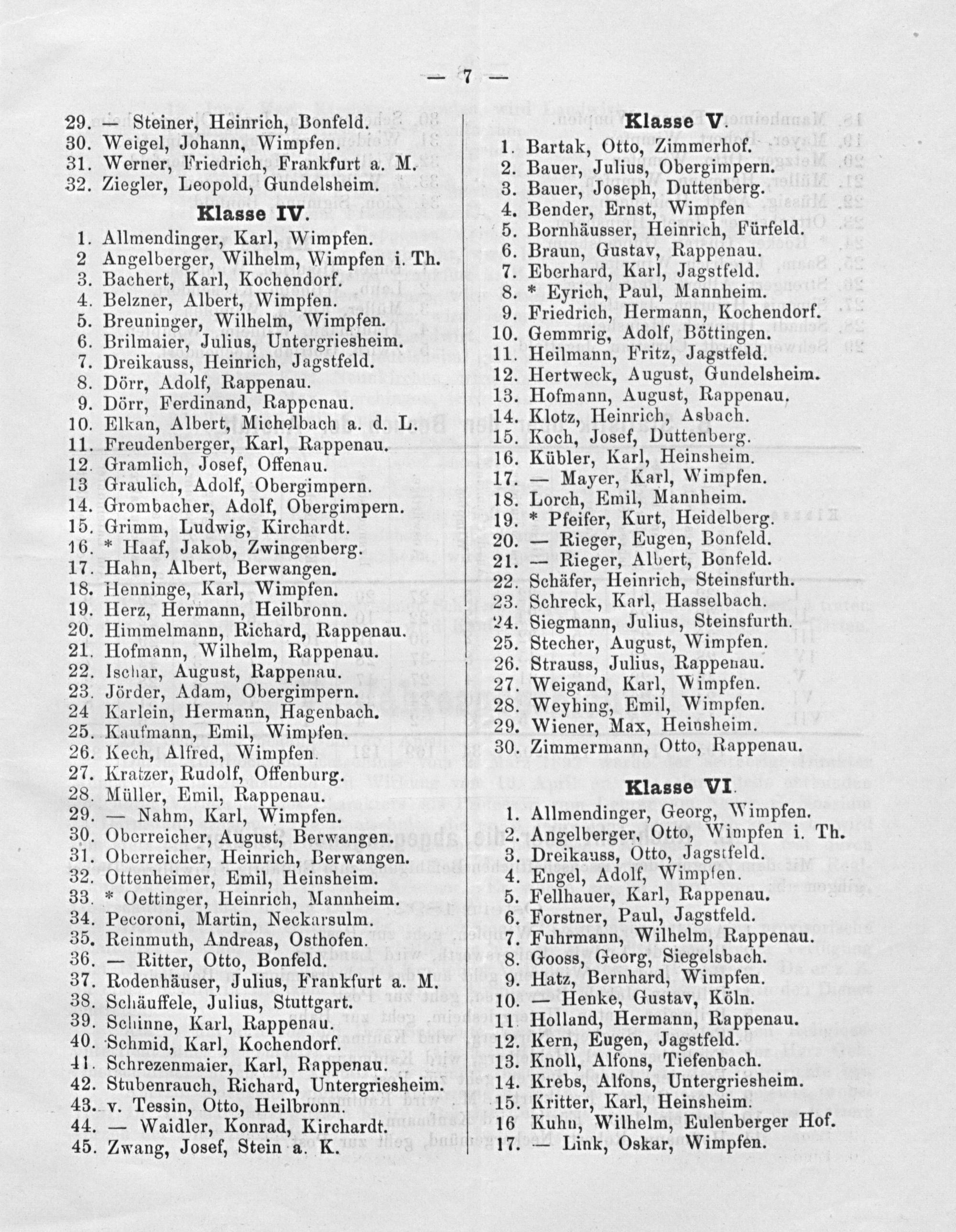 Klasse IV. Allmendinger, Karl, Wimpfen.