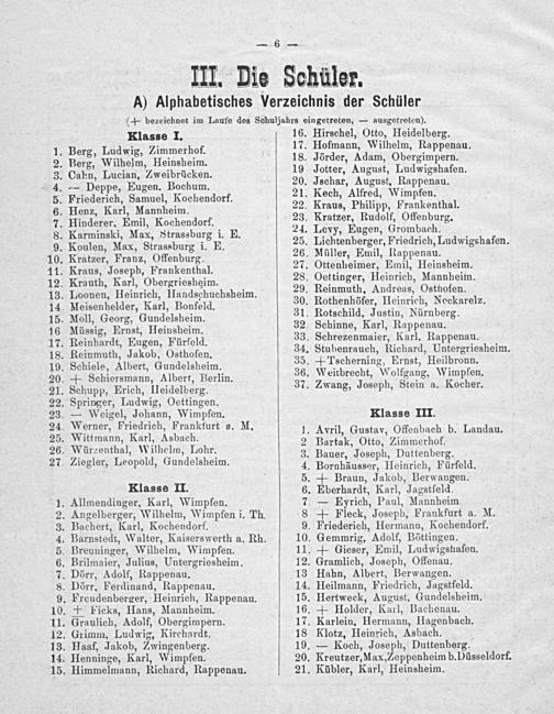 A) Alphabetisches Verzeichnis der Schüler