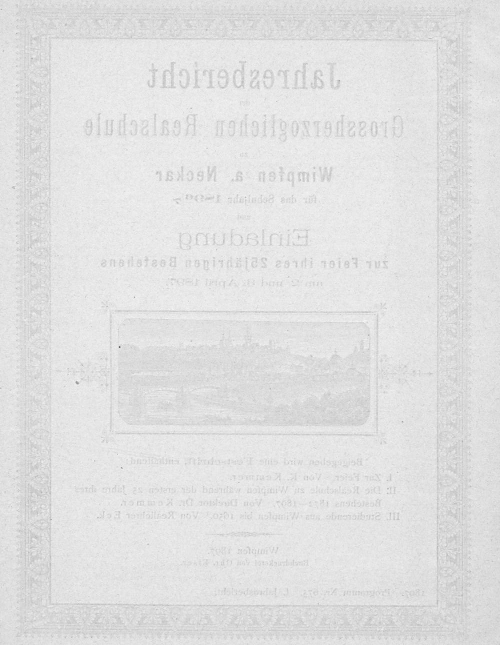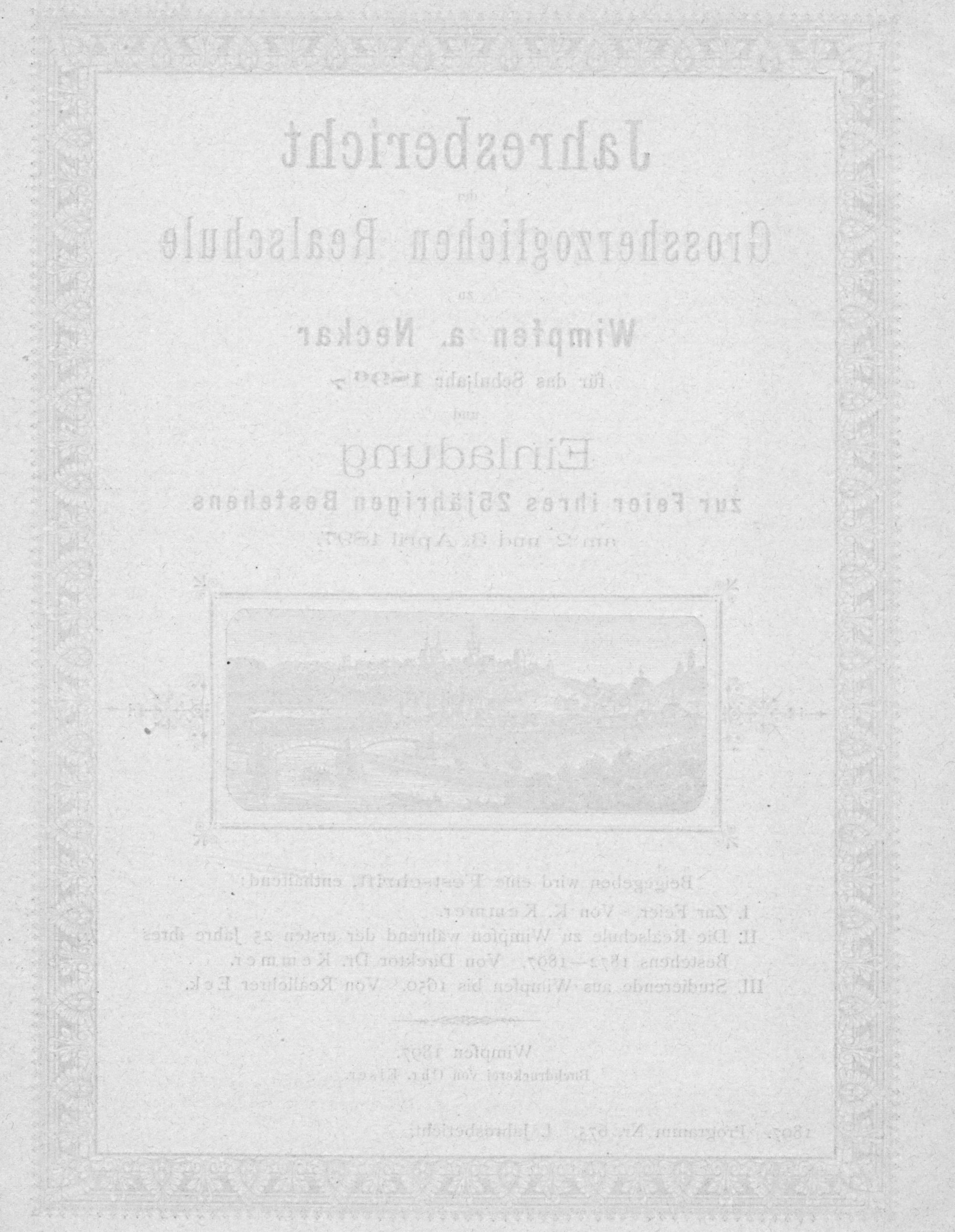 Jahresbericht der Hessischen Realschule zu Wimpfen am Neckar für das Schuljahr ...