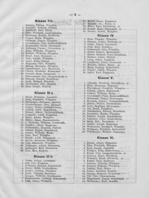 Mayer, Franz, Rappenau. Messner, Jos., Mainz.+ Möser, Karl, Heidelberg.+ Rumpf, Hans, Darmstadt.+ Stecher, Rudolf, Winipfen.