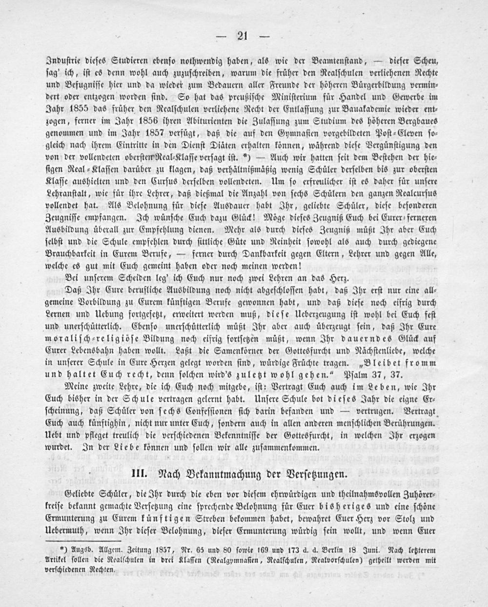 *) Augsb. Allgem. Zeitung 1857, Nr. 65 und 80 ſowie 169 und 173 d. d. Berlin 18. Juni. Nach letzterem Artikel ſollen die Realſchulen in drei Klaſſen(Realgymnaſien, Realſchulen, Realvorſchulen) getheilt werden mit verſchiedenen Rechten.