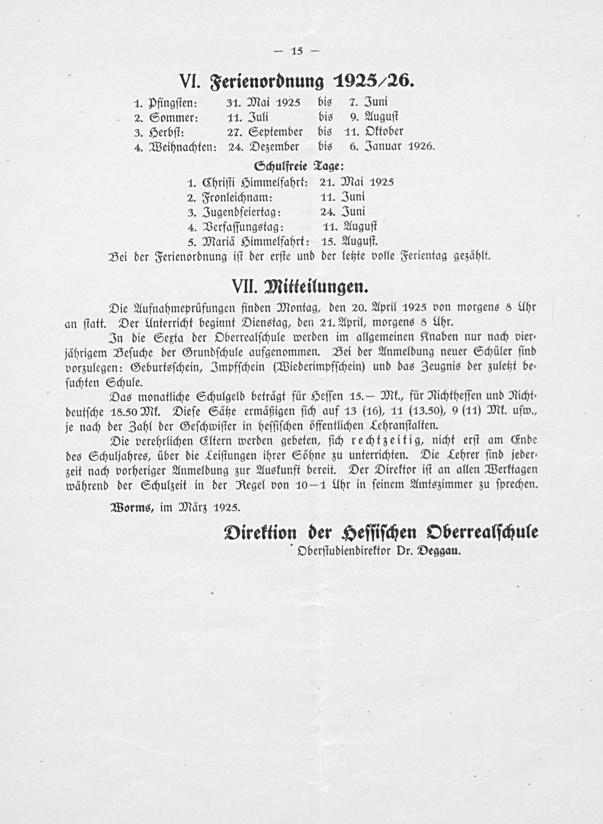 Die Aufnahmeprüfungen finden Montag, den 20. April 1925 von morgens 8 Ahr an ſtatt. Der Anterricht beginnt Dienstag, den 21. April, morgens 8 Ahr.