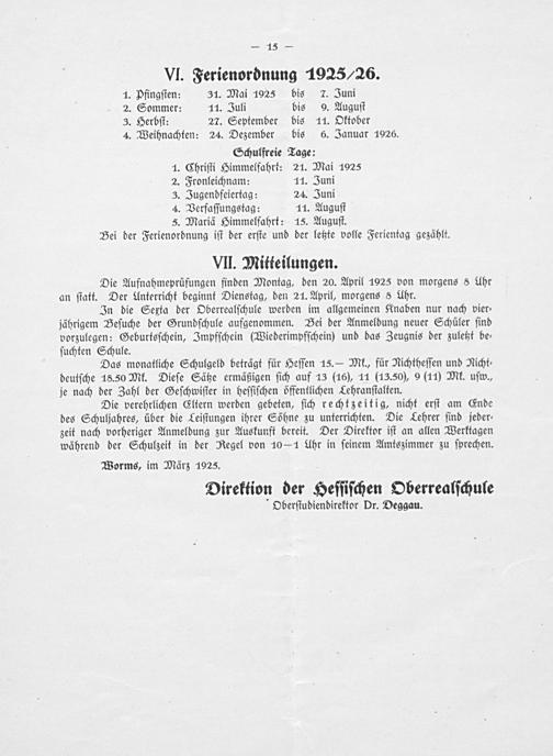 Schulfreie Tage: 1. Chriſti Himmelfahrt: 21. Mai 1925