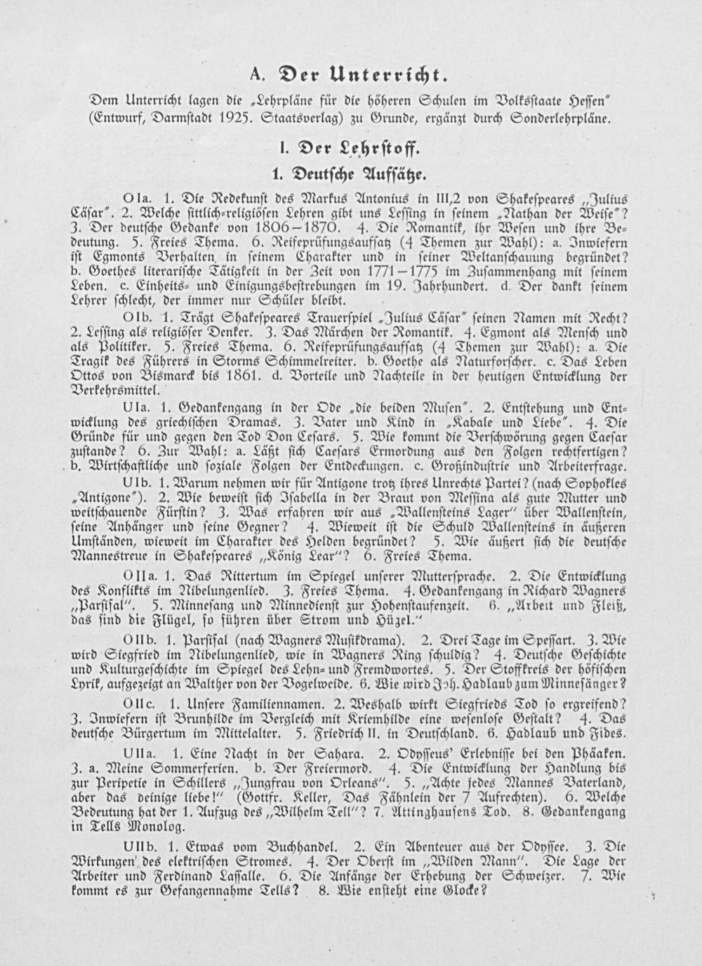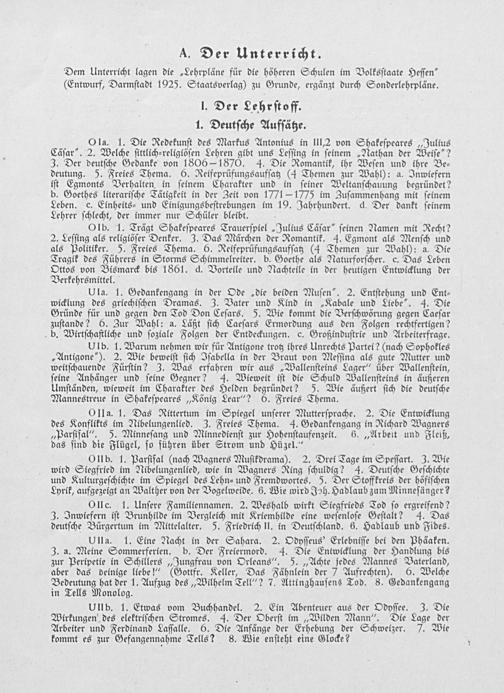 Dem Unterricht lagen die„Lehrpläne für die höheren Schulen im Volksſtaate Heſſen“ (Entwurf, Darmſtadt 1925. Staatsverlag) zu Grunde, ergänzt durch Sonderlehrpläne.