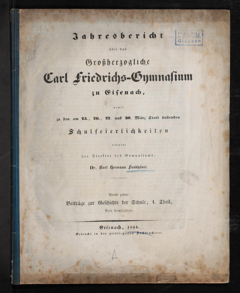 Eiſenach, 1844. Gedruckt in der privilegirten Buchdrucherei.