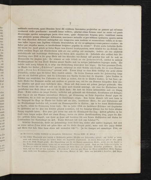 Aehnliche Brunnenfeſte, theils am Johannistage ſelbſt theils kurz vorher oder nachher begangen, ſind noch an vielen andern Orten üblich und gehen ſicher auf die älteſte Vorzeit zurück, wenn auch ihre jetzige Geſtalt und Weiſe dies hohe Alter kaum ahnen und vermuthen läßt 1¹). In der ſinnigen und anmuthigen Sitte, am