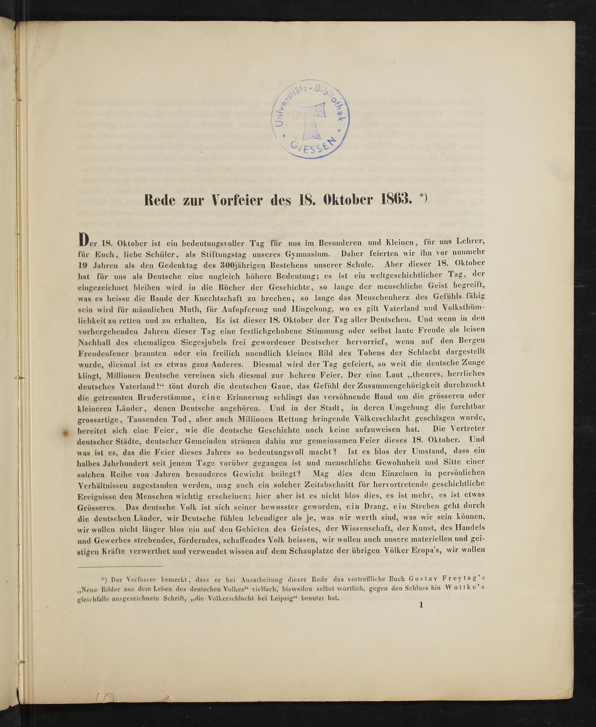 Rede zur Vorfeier des 18. Oktober 1863.)