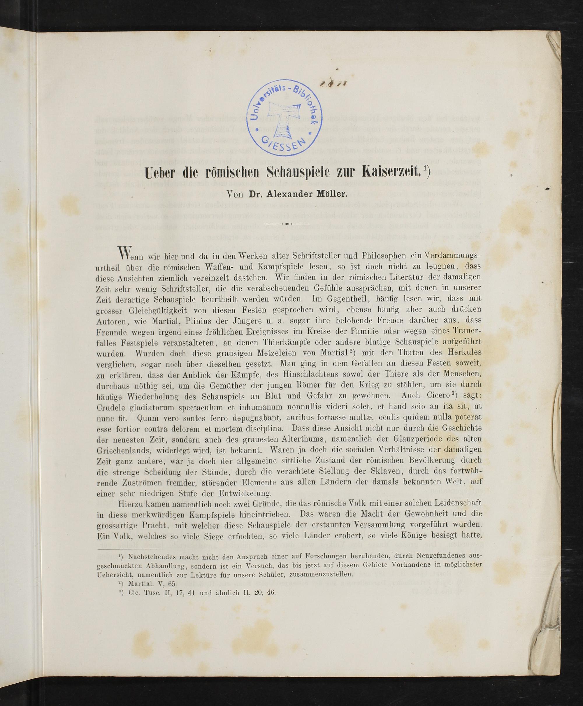 Ueber die römischen Schauspiele zur Kaiserzeit.) Von Dr. Alexander Möller.