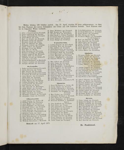 Eisen ach am 17. April 1871. Dr. Funkhäanel.