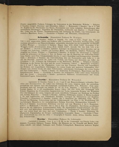 Sckunda. Klassenlehrer Professor Dr. Weniger.