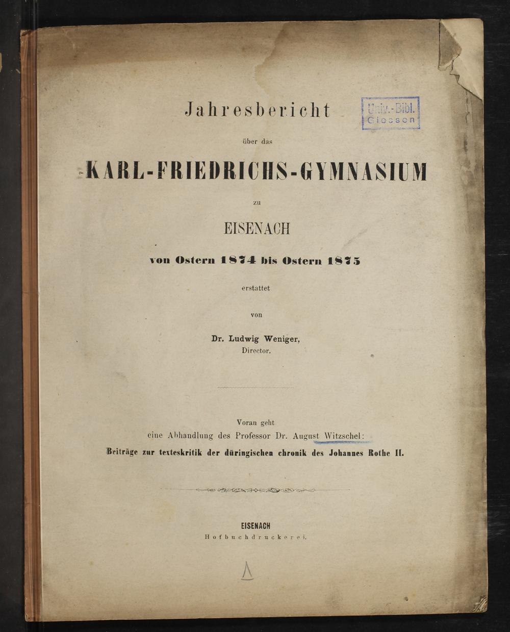 von Ostern 1874 bis Ostern 1875
