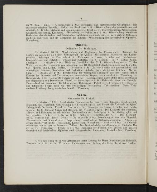 Sexta. Ordinarius Dr. Pickel.