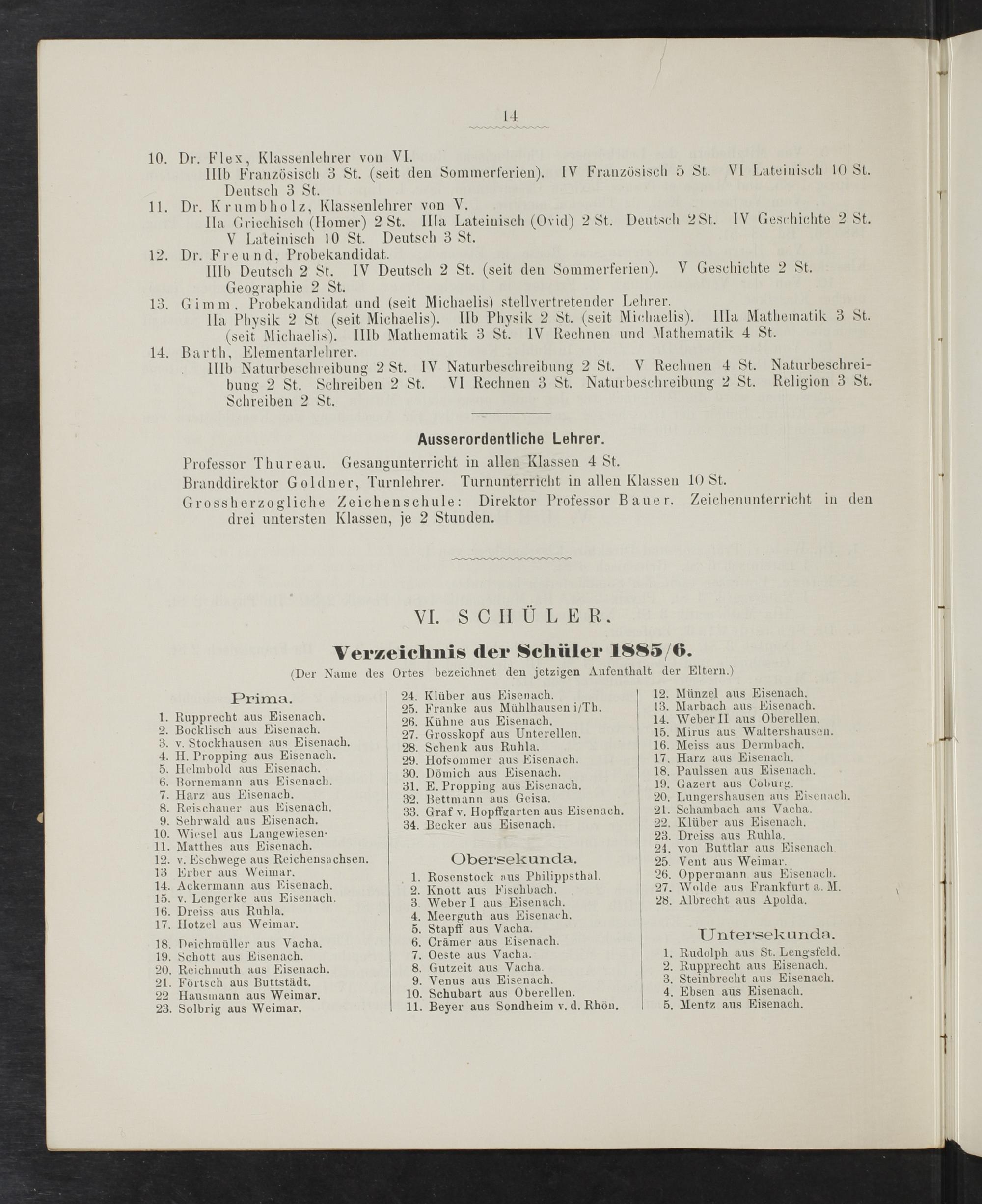 Ausserordentliche Lehrer. Gesangunterricht in allen Klassen 4 St. Turnunterricht in allen Klassen 10 St.