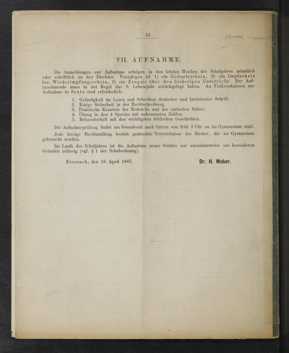 Eisenach, den 18. April 1887. Dr. H. Weber.