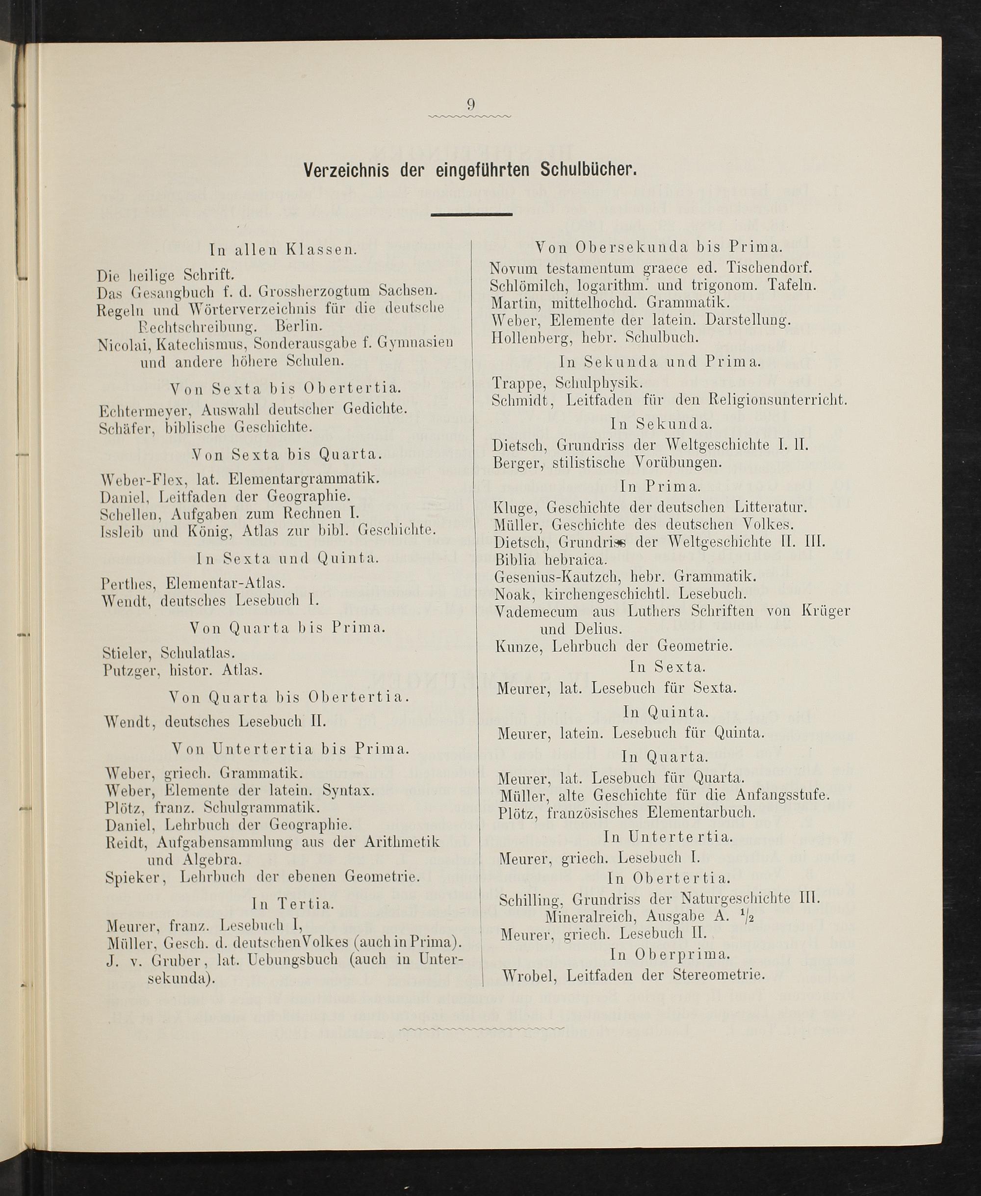 In Tertia. Meurer, franz. Lesebuch I, Müller, Gesch. d. deutschen Volkes(auch in Prima). J. v. Gruber, lat. Uebungsbuch(auch in Unter- sekunda).