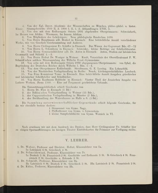 11. Von Herrn Hofrat Dr. Weniger in Weiwar: Knott, Verzeichnis der Oberstlieutenant F. W. Schmidt’schen antiken Münzsammlung des Wilhelm Ernst-Gymnasiums.