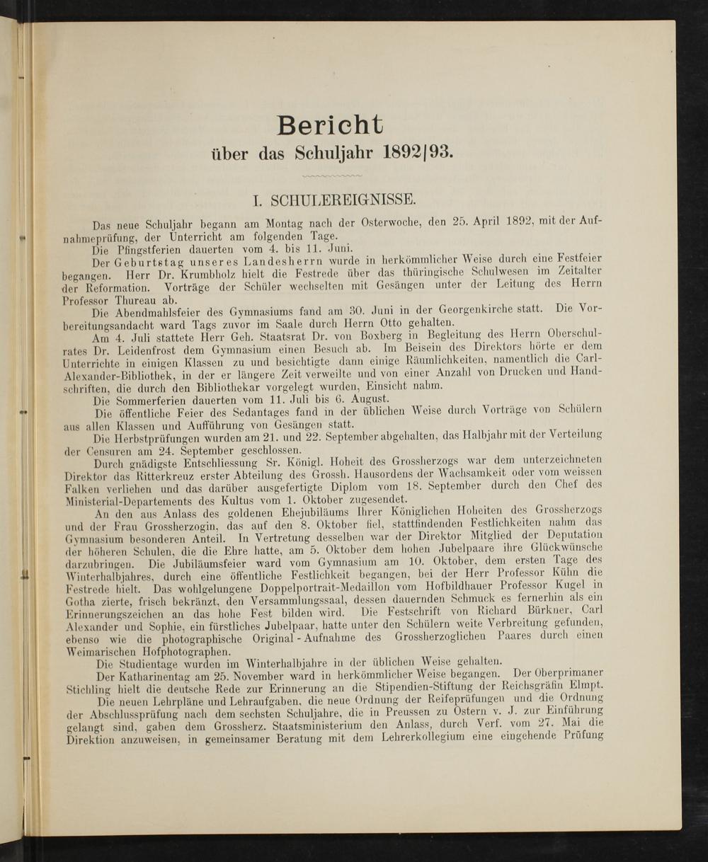 Bericht über das Schuljahr 1892/93.