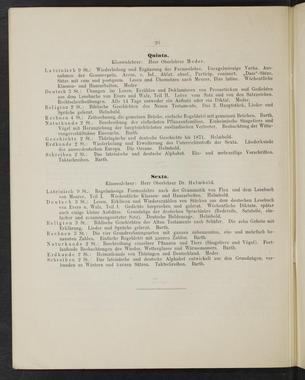 Quinta. Klassenlehrer: Herr Oberlehrer Meder.