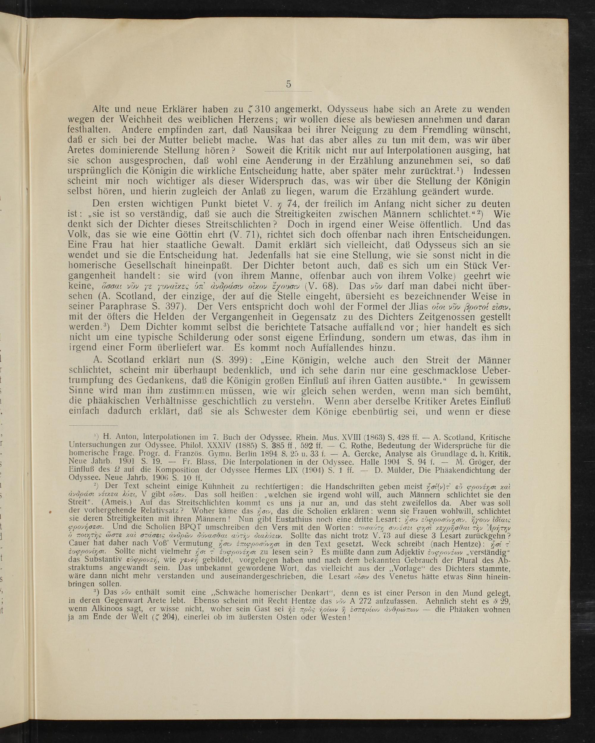 *) H. Anton, Interpolationen im 7. Buch der Odyssee. Rhein. Mus. XVIII(1863) S. 428 ff.— A. Scotland, Kritische Untersuchungen zur Odyssee. Philol. XXXIV(1885) S. 385 ff, 592 ff.— C. Rothe, Bedeutung der Widersprüche für die homerische Frage. Progr. d. Französ. Gymn. Berlin 1894 S. 25 u. 33 f.— A. Gercke, Analyse als Grundlage d. h. Kritik. Neue Jahrb. 1901 S. 19.— PFr. Blass. Die Interpolationen in der Odyssee. Halle 1904 S. 94 f.— M. Gröger, der Einfluß des 4 auf die Komposition der Odyssee Hermes LIX(190⁴) S. 1 ff.— D. Mülder, Die Phäakendichtung der Odyssee. Neue Jahrb. 1906 S. 10 ff.