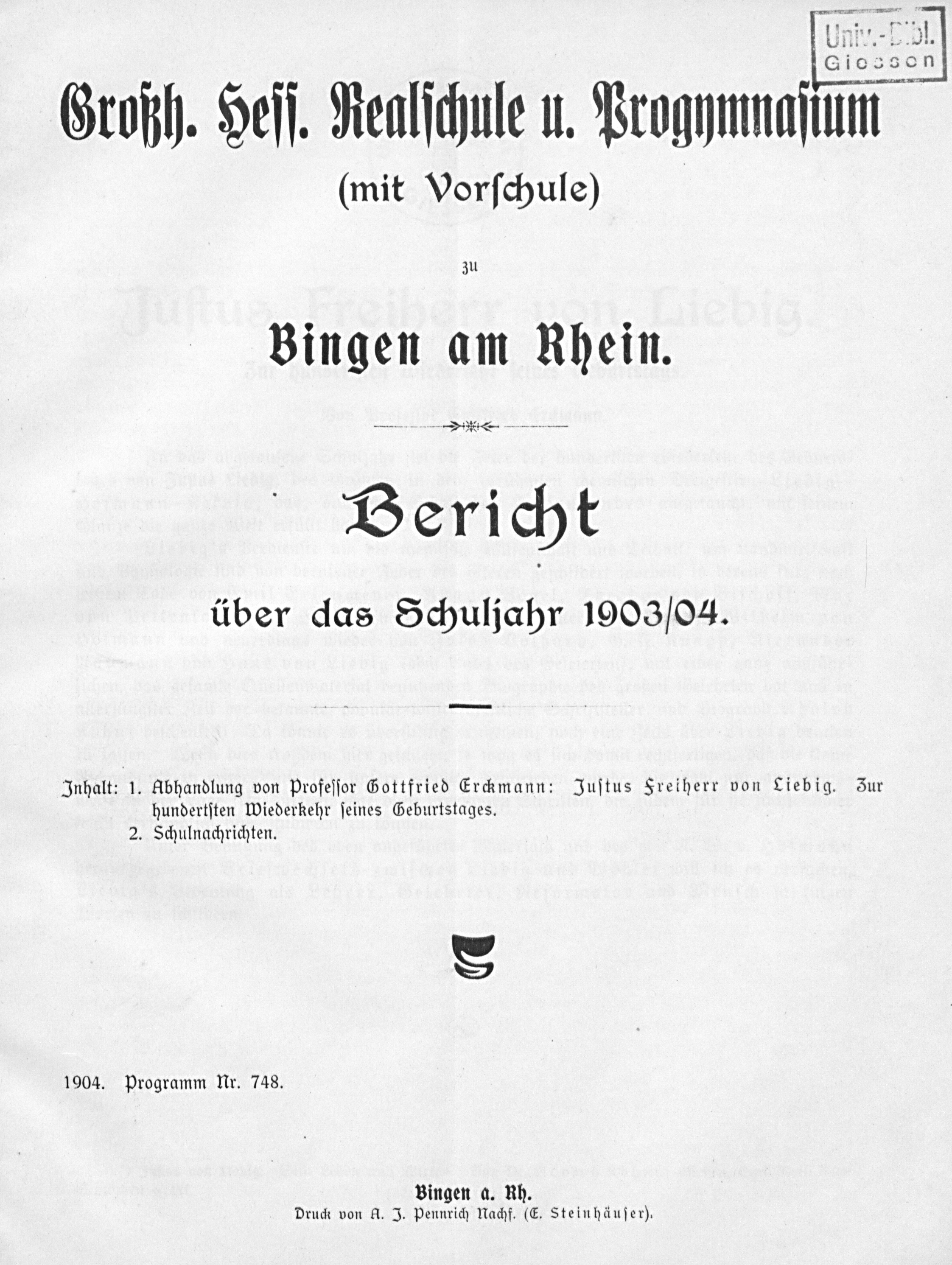 Justus Freiherr von Liebig : zur hundertsten Wiederkehr seines Geburtstages / Gottfried Erckmann