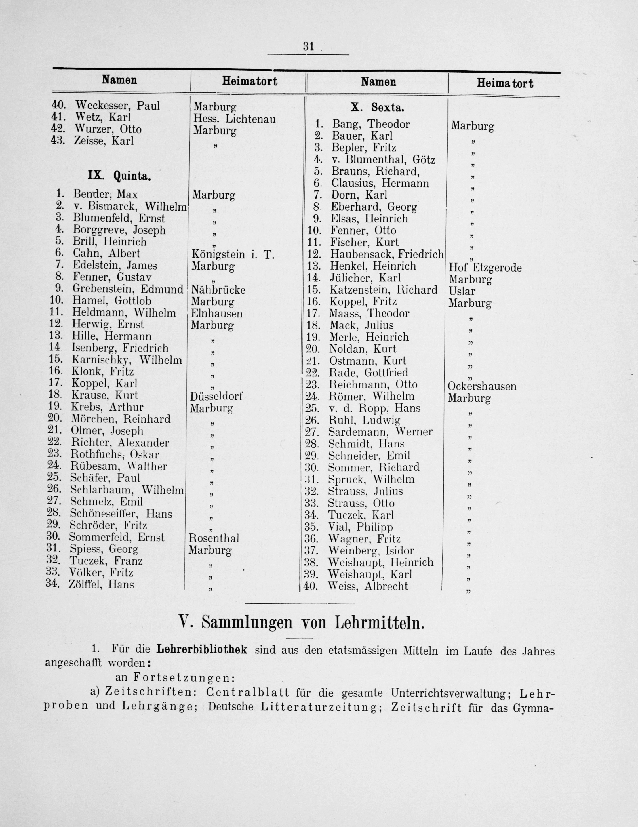 Übersicht der bisher erschienenen Programmabhandlungen [des Königlichen Gymnasiums zu Marburg/L.] 1834-1891