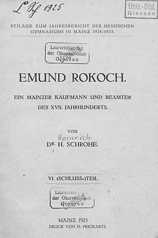 Emund Rokoch. Ein Mainzer Kaufmann und Beamter des XVII. Jahrhunderts