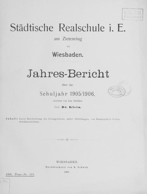 Jahres-Bericht über das Schuljahr ... / Städtische Realschule i.E. am Zietenring zu Wiesbaden