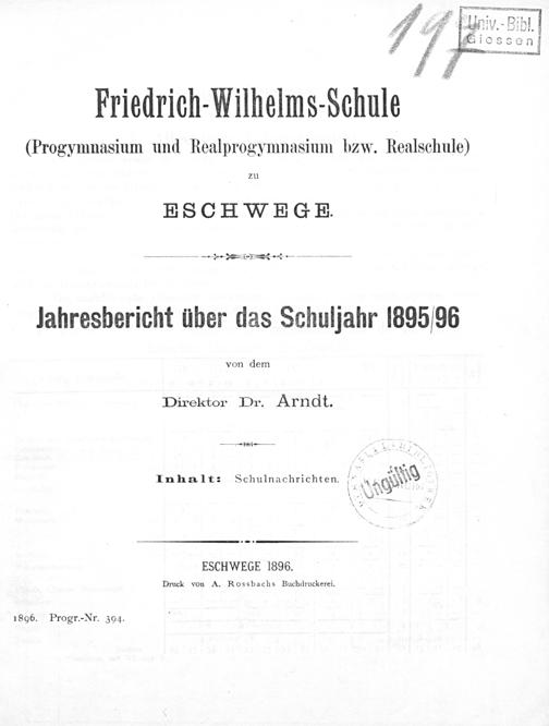 Jahresbericht : über das Schuljahr ... / Friedrich-Wilhelms-Schule (Progymnasium und Realprogymnasium bzw. Realschule) zu Eschwege