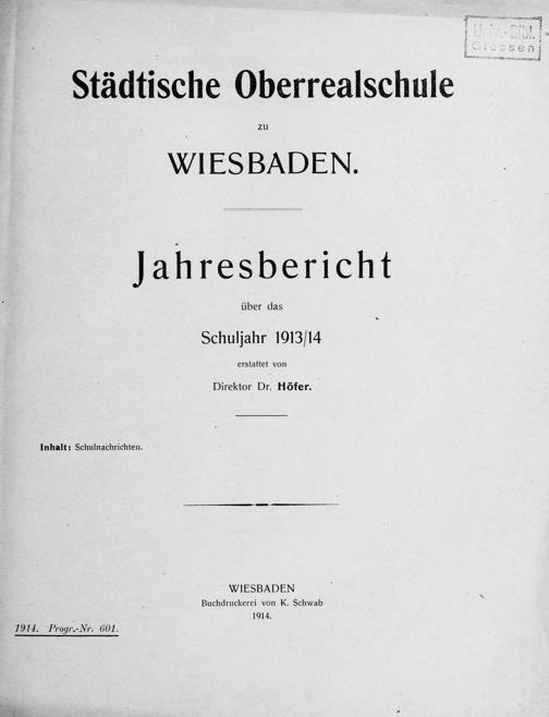 Jahresbericht über das Schuljahr ... / Städtische Oberrealschule zu Wiesbaden