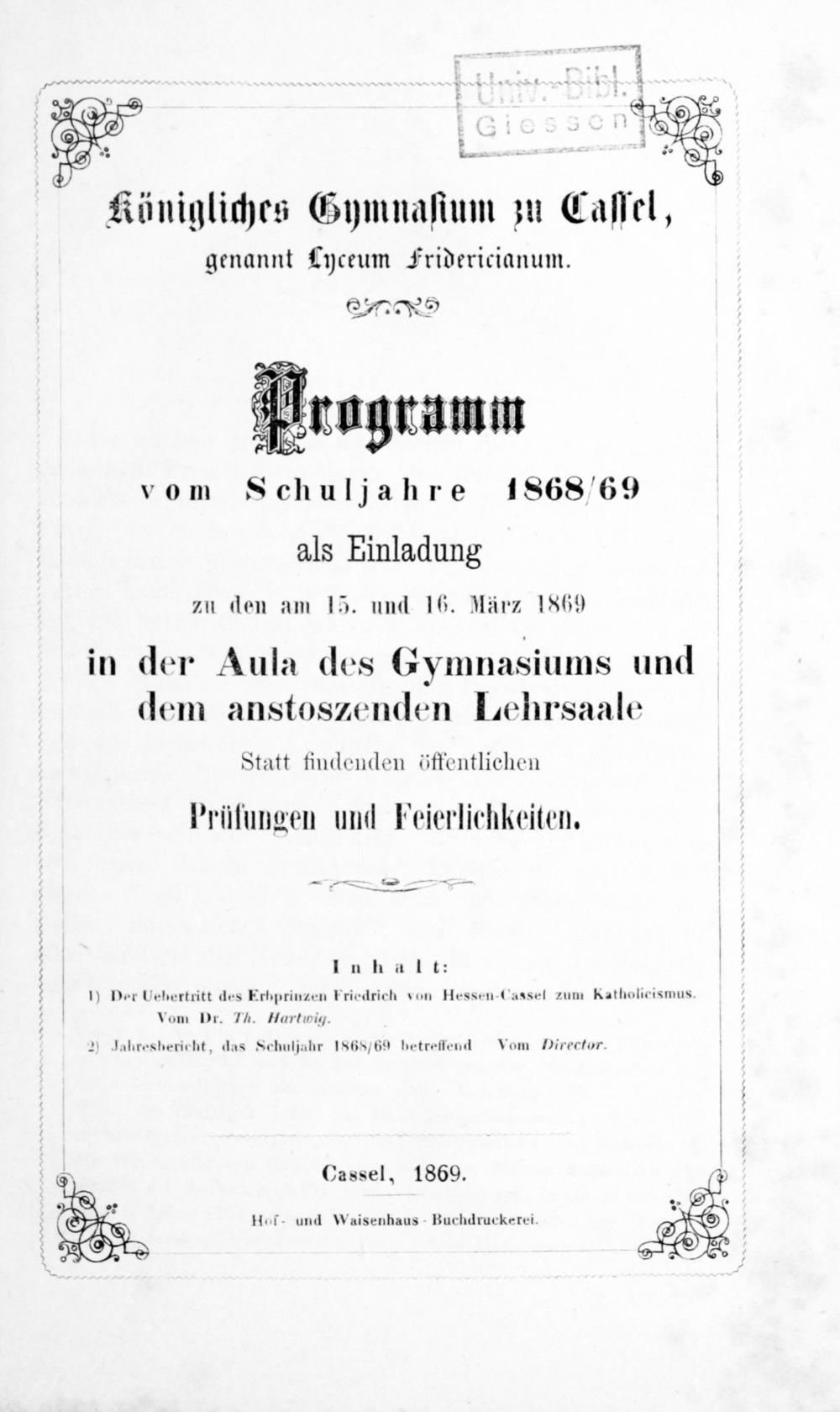 Der Uebertritt des Erprinzen von Hessen-Cassel zum Katholicismus / von Th. Hartwig