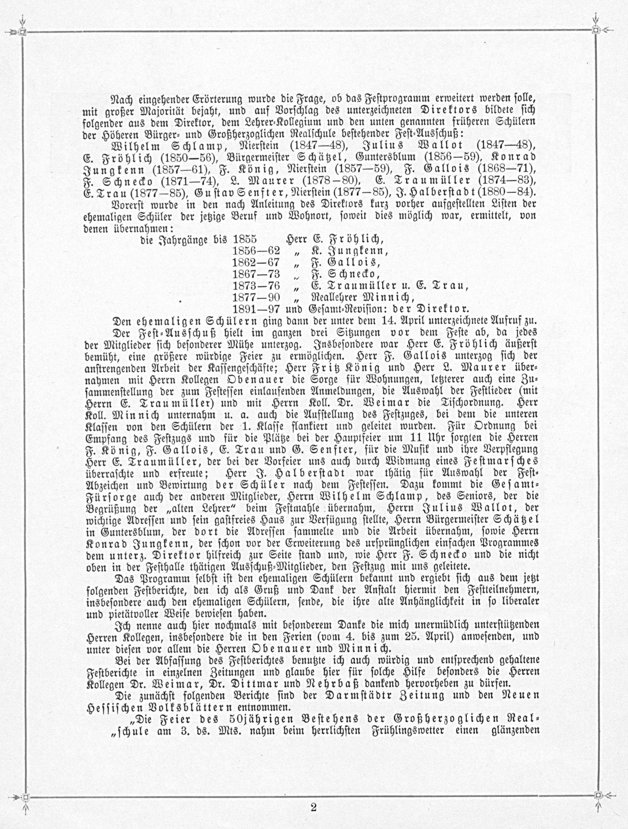 Festbericht über die Feier des 50jährigen Bestehens der Großh. Realschule zu Oppenheim a. Rh. vormaligen Höheren Bürgerschule am 2. und 3. Mai 1897