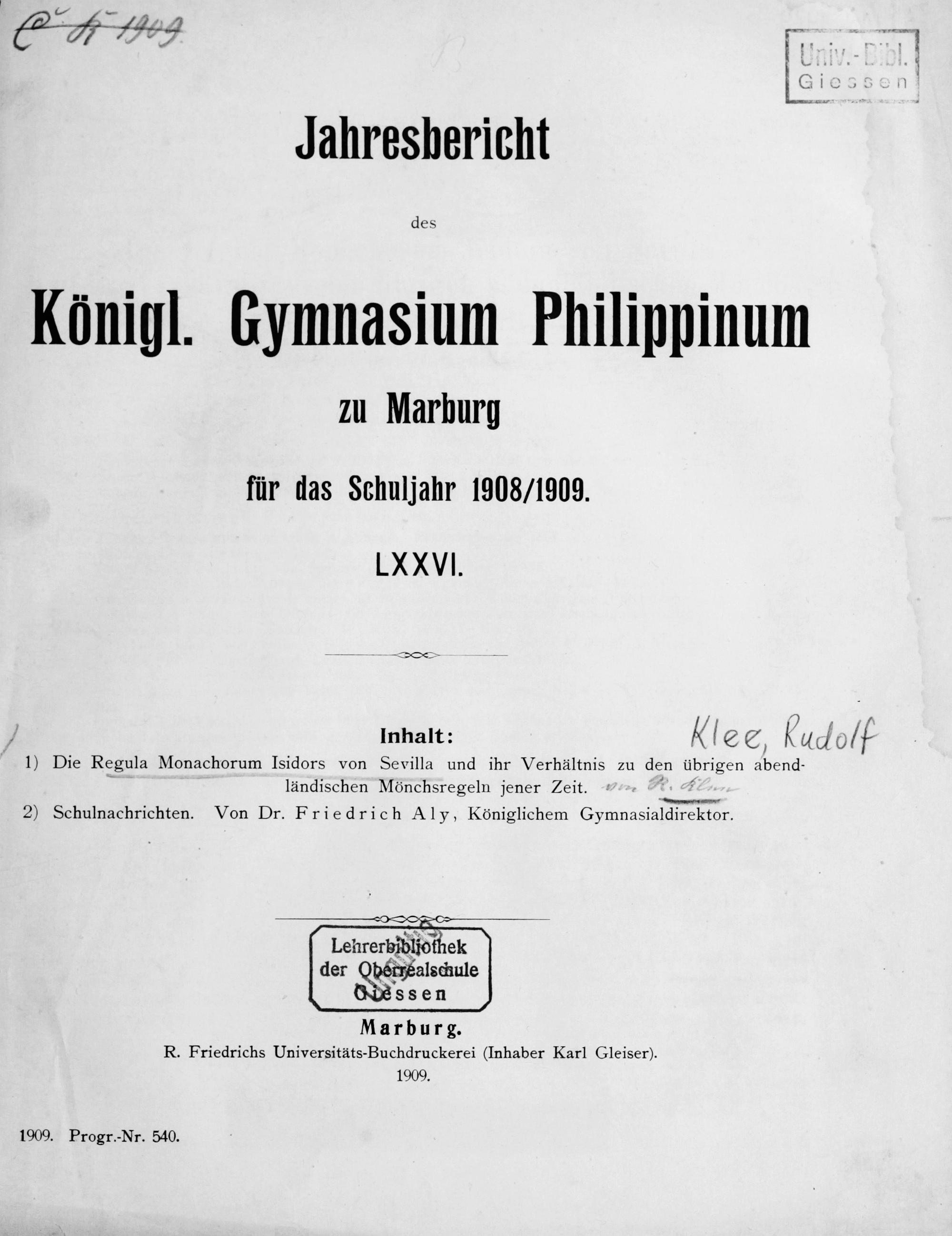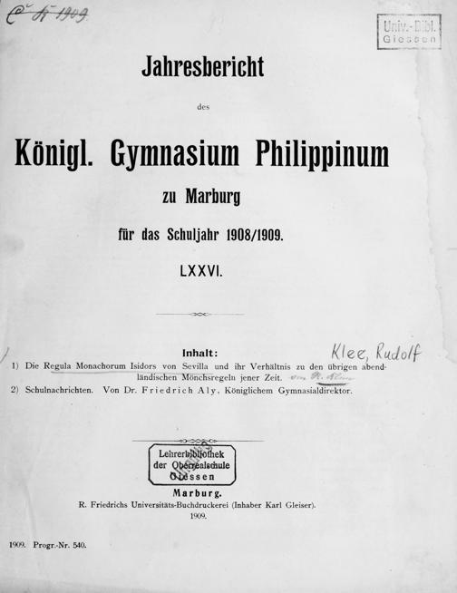 Jahresbericht des Königl. Gymnasium Philippinum zu Marburg
