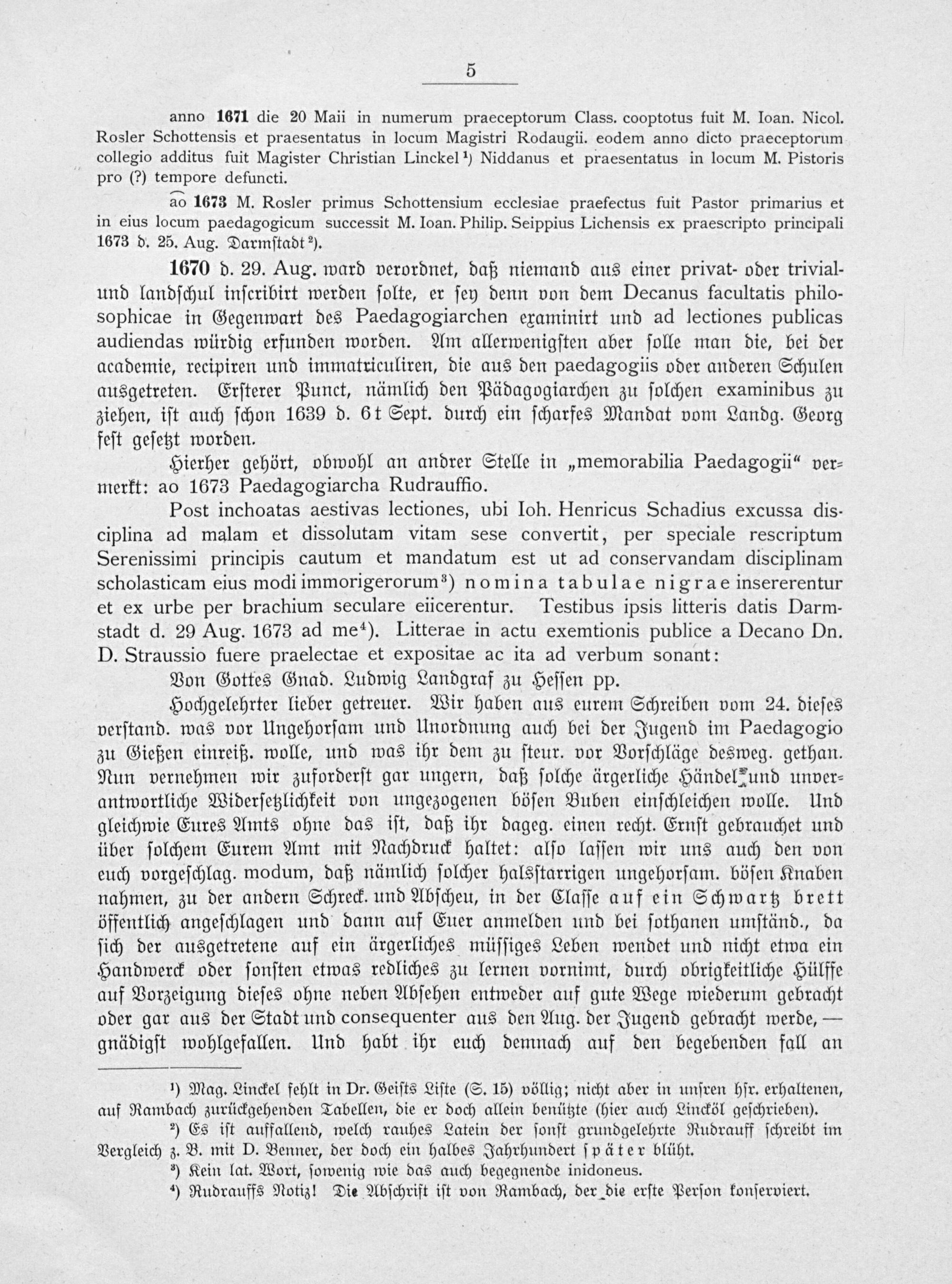 Beiträge zur Geschichte des Großh. Gymnasiums zu Gießen für die Dreijahrhundertfeier am 10. Oktober 1905 auf Grund von Mag. Franz Rambachs Sammlungen / bearb. und hrsg. von Ludwig Schädel