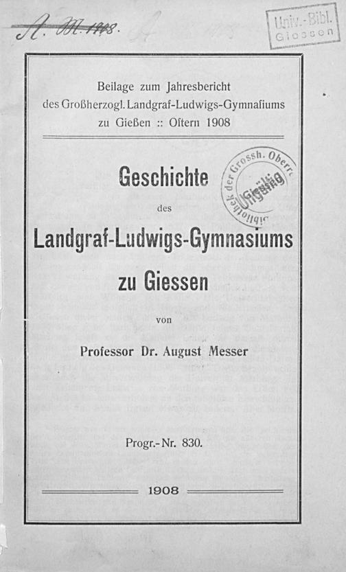 Geschichte des Landgraf-Ludwigs-Gymnasiums zu Giessen / von August Messer