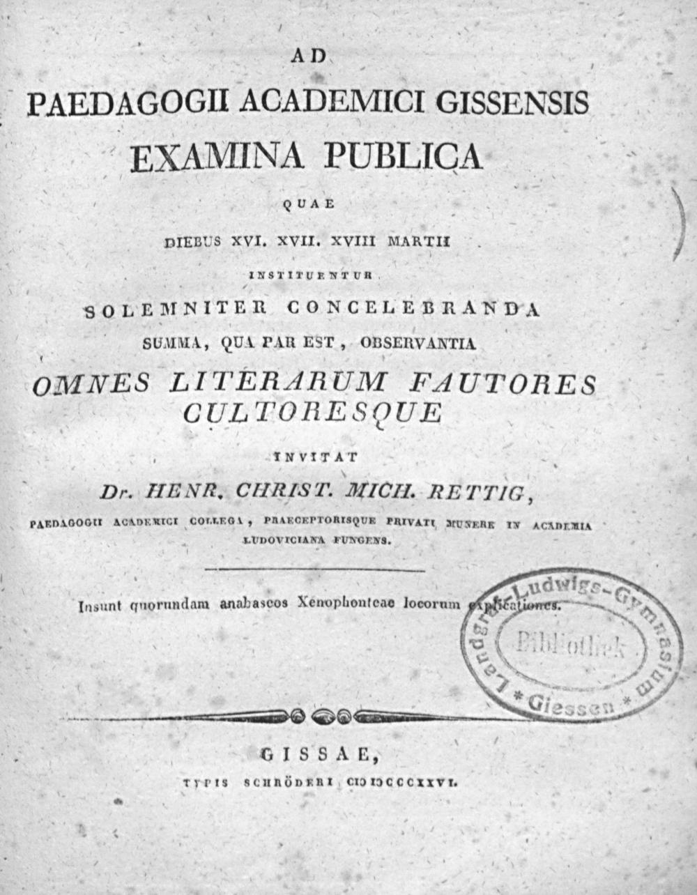 Gymnasii Academici Gissensis examina publica diebus ... instituenda indicit